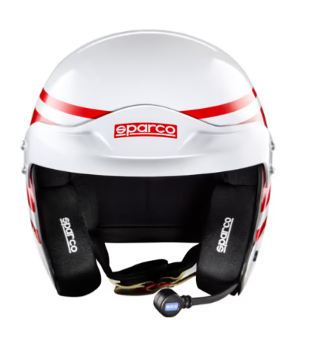 Avec son motif graphique personnalisé, évoquant le design du premier casque Sparco, utilisé dans les années 70 dans les compétitions les plus prestigieuses, ce casque jet  est fabriqué à partir d'une coque en fibre de verre renforcée avec du carbone-kevlar pour être encore plus résistante et ainsi offrir la meilleure protection au pilote.