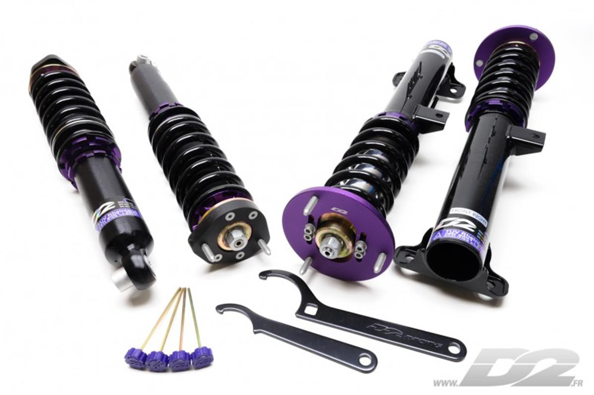 Idéale pour la pratique du drift, la gamme D2 Drift propose des combinés filetés spécifiquement étudiés pour maximiser le contact des pneus avec la route à haute vitesse, et sous une forte accélération latérale. Rabaissement maximal, carrossage et chasse réglables, mise au point précise et pistons de gros diamètre : tous les meilleurs ingrédients sont réunis !